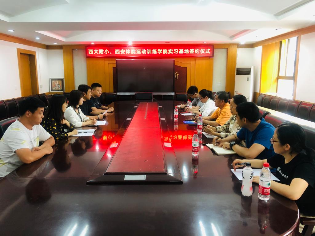 6月3日下午,运动训练学院院长武洛生、党委书记王鑫、党委副书记张佩莉、党政办公室主任刘志云、教学办公室主任全乐及18级年级主任于昕一行6人赴西大附小进行“教育实习基地”签约仪式。西大附小副校长马红娟、德育主任张倩怡、体育教研组组长程泓、组员惠涛、田翔等诸位领导老师参加了本次签约仪式。