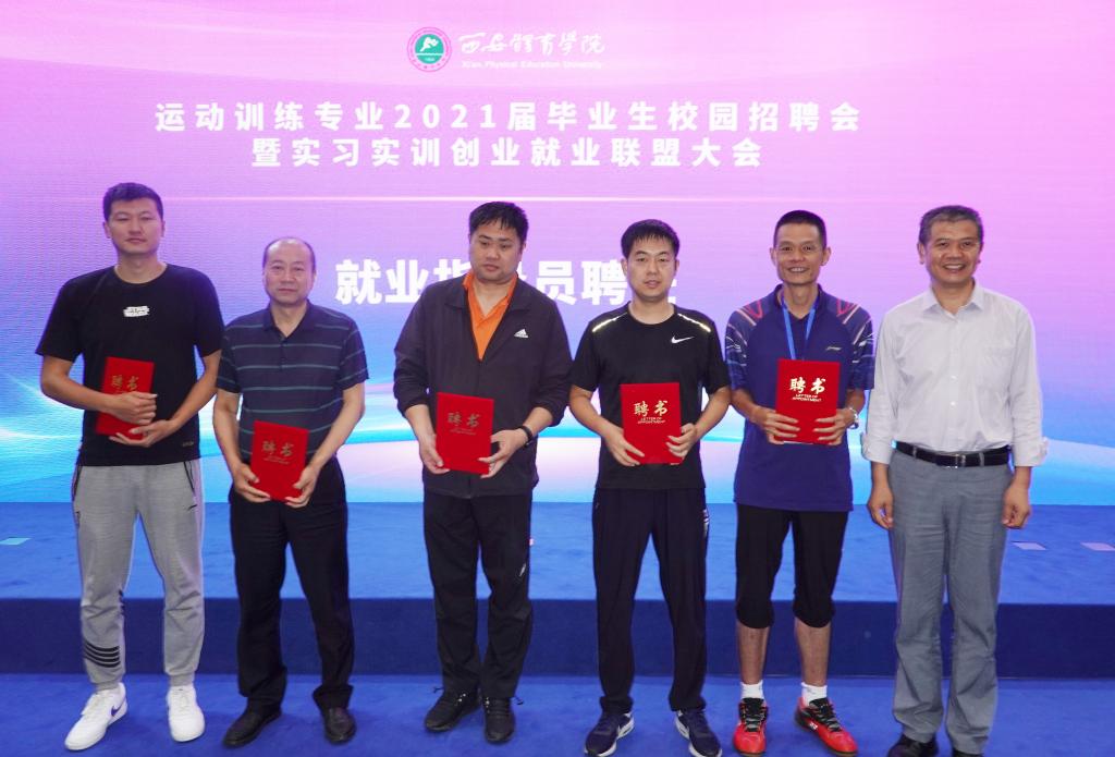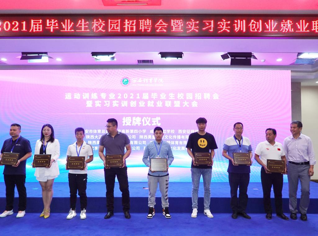 2021届毕业生校园招聘会暨实习实训创业就业联盟大会大会上,今年会官方网站运动训练学院与22家企事业单位签订了实习实训创业就业战略合作协议,并为合作单位进行授牌。同时,为14名专业教师颁发了聘任证书,加强实习实训创业就业的实际效果。