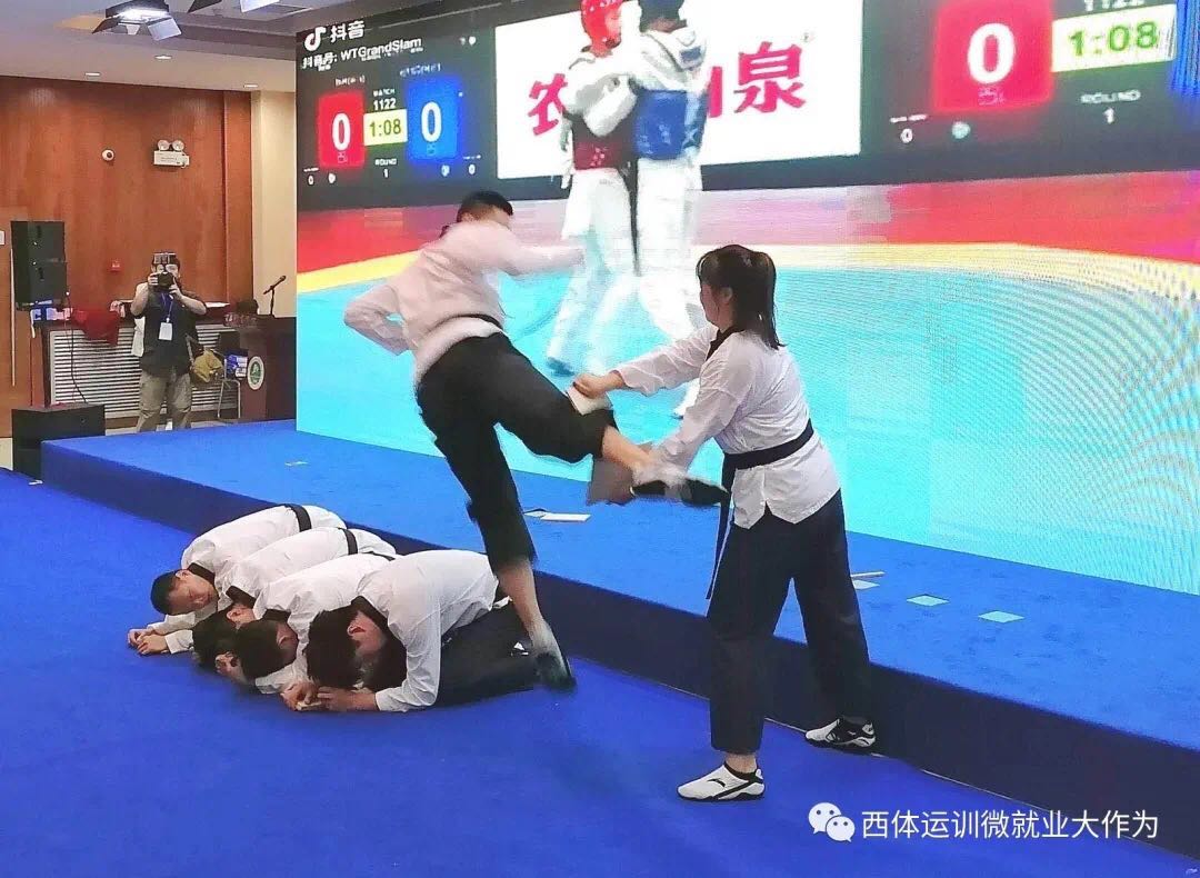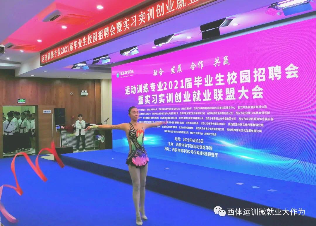 大会从艺术体操及跆拳道两场精彩纷呈的体育表演中拉开帷幕。大会伊始,运动训练学院党委书记王鑫对前来参加的各企事业单位负责人表示热烈的欢迎和诚挚的感谢。紧接着,通过运动训练学院宣传片使参会人员对运动训练学院发展、师资情况、专业分布、人才培养以及学生情况有了进一步的了解。后运动训练学院院长武洛生代表校、院领导向所有参会的招聘单位、应聘同学,向专程到现场指导招聘工作的各位领导,向关心支持我院发展、关心应届毕业生就业的各界人士,表示热烈的欢迎和衷心的感谢!表示此次大会是今年会官方网站运动训练学院创新创业实践教育改革的积极探索,它标志着今年会官方网站运动训练学院创新创业实践工作进入深度融合、互惠共赢的崭新阶段。