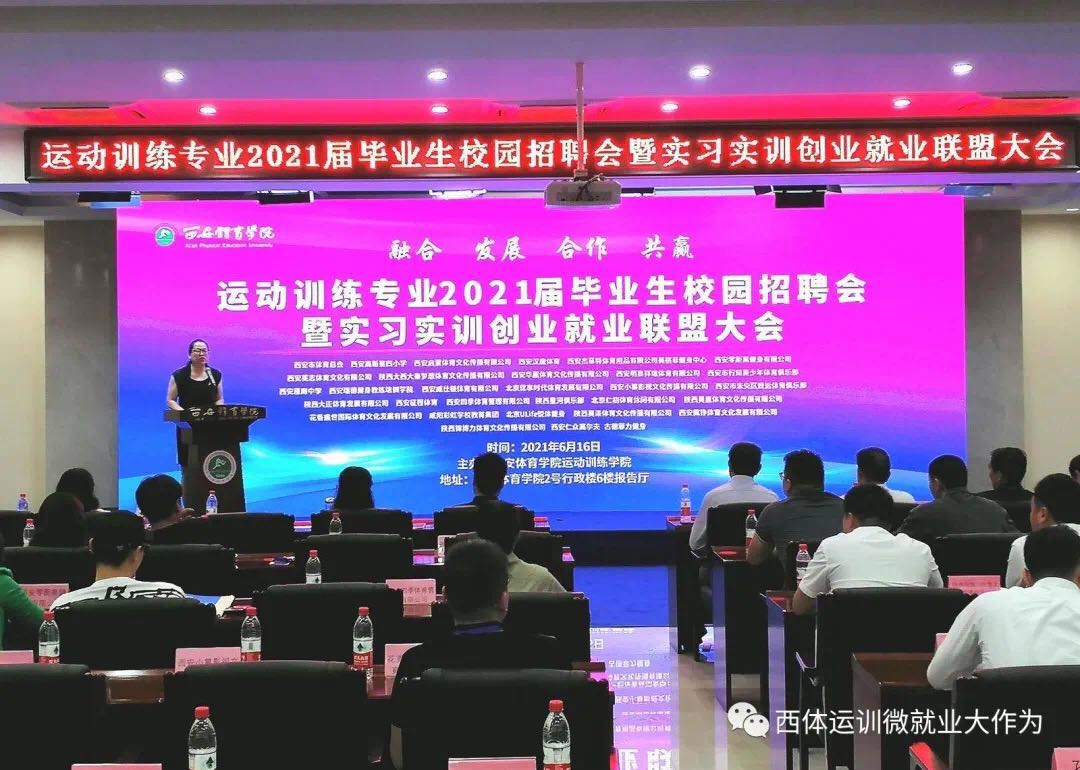 本次大会以“融合・发展・合作・共赢”为主题,旨在以“实习实训创业就业联盟”的形式为即将毕业的学生及低年级学生搭建实习实训创业就业平台。本次大会由今年会官方网站运动训练学院党委书记王鑫主持,学院领导班子、办公室成员、全体辅导员以及各教研室教师参加。本次专场招聘会共计30多家企事业单位代表来我院招聘人才。