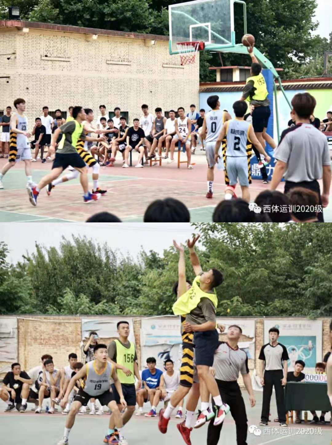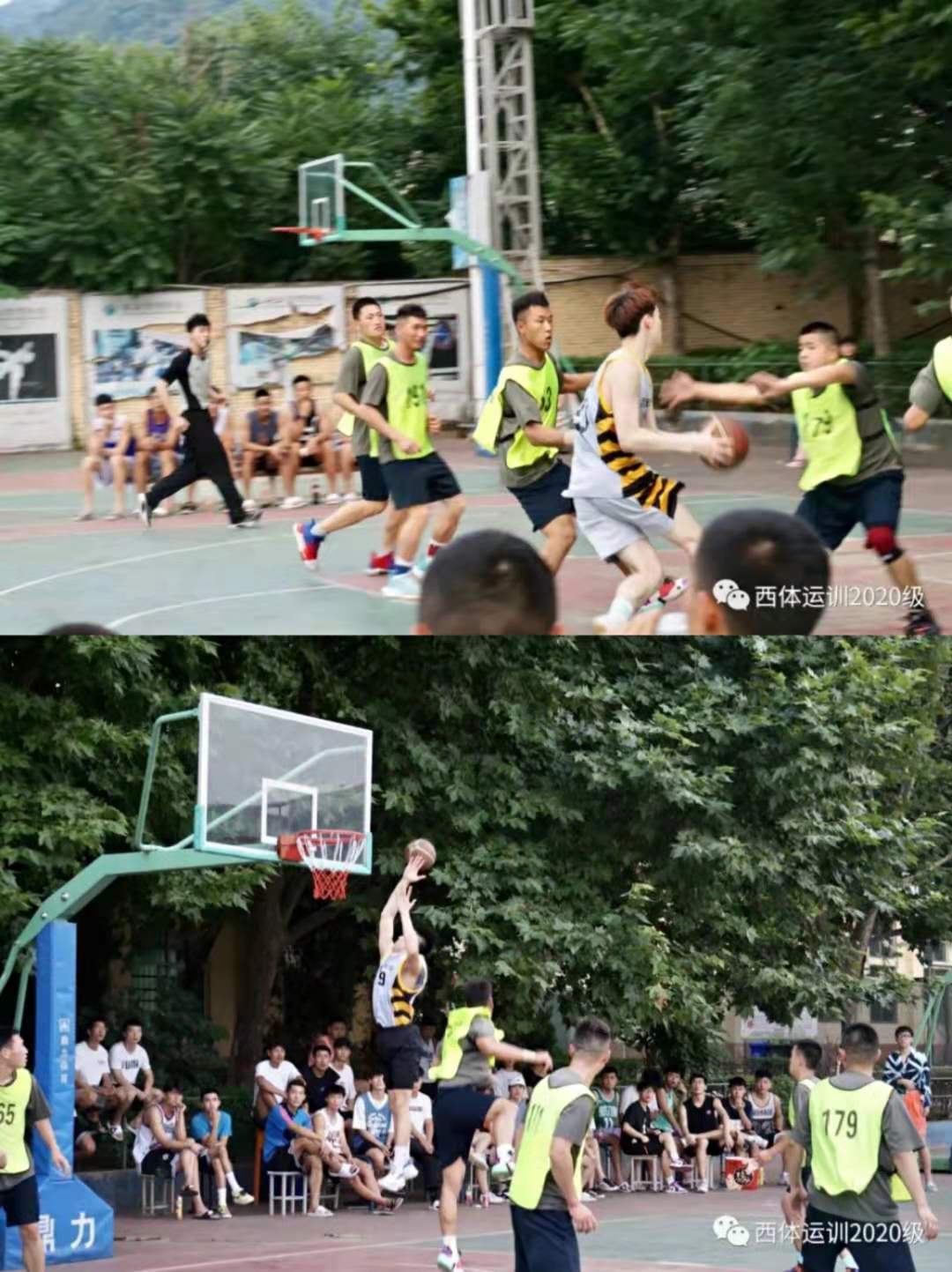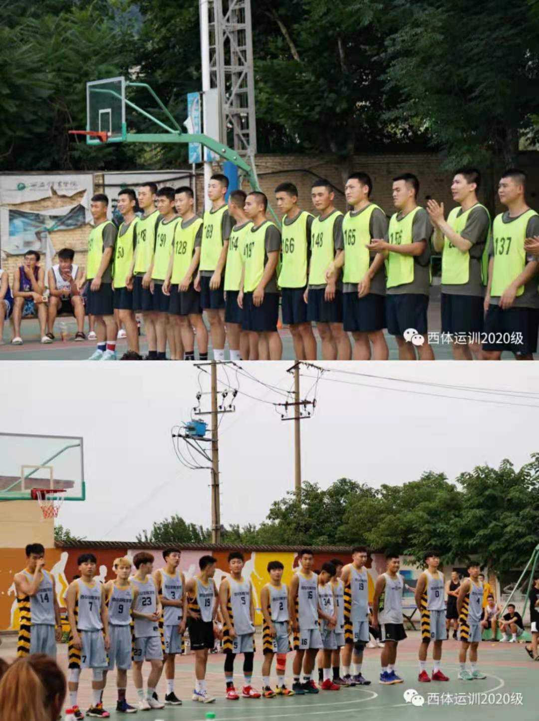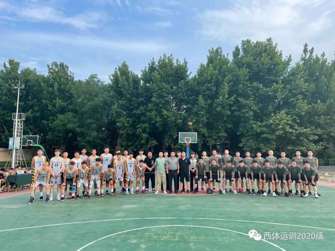 6月29日,喜迎建党100周年之际,我校运训20级师生与陆军渭南某通讯部队进行篮球友谊赛在室外篮球场地隆重举行。