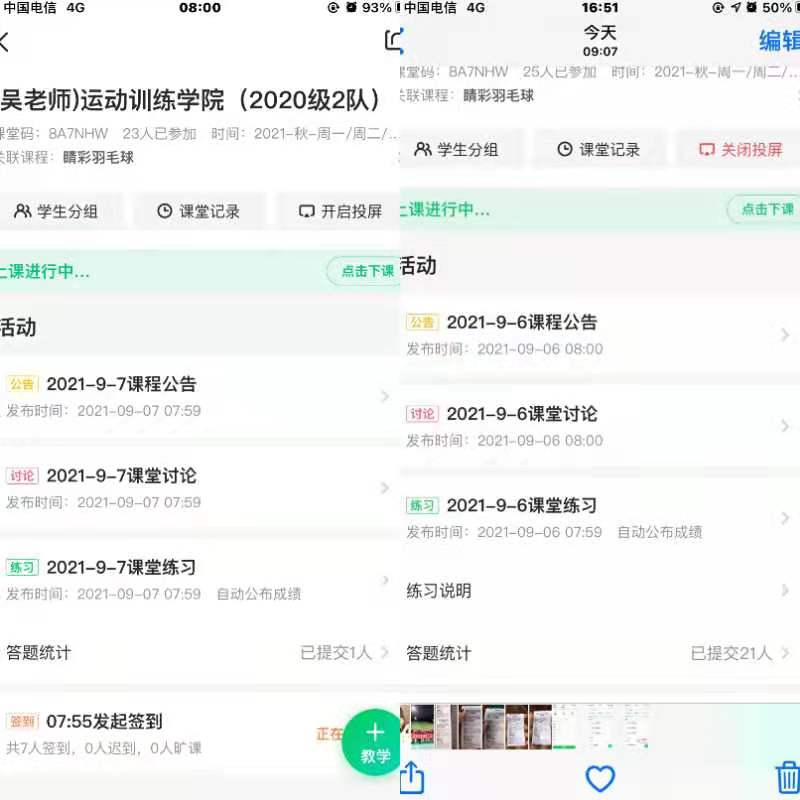 经汇总整理,篮球教研室选用腾讯课堂和腾讯会议平台对学生进行线上授课;排球教研室选用学习通和腾讯课堂平台对学生进行授课;乒羽教研室选用学习通、慕课堂+腾讯会议和腾讯会议+QQ(微信)等平台对学生进行授课;运动训练学教研室选用学习通+讨论作业平台对学生进行授课;重竞技教研室选用学习通+PPT+讲解、腾讯会议、慕课堂、微信等平台对学生进行授课。