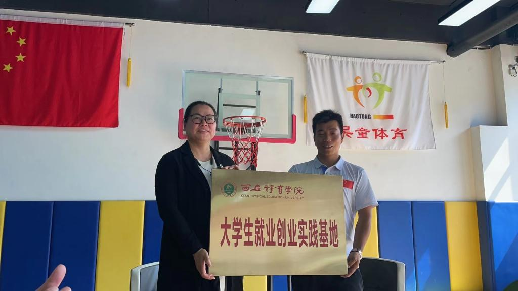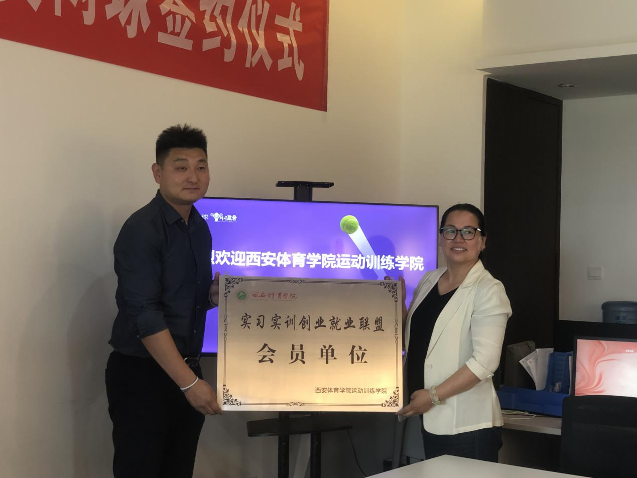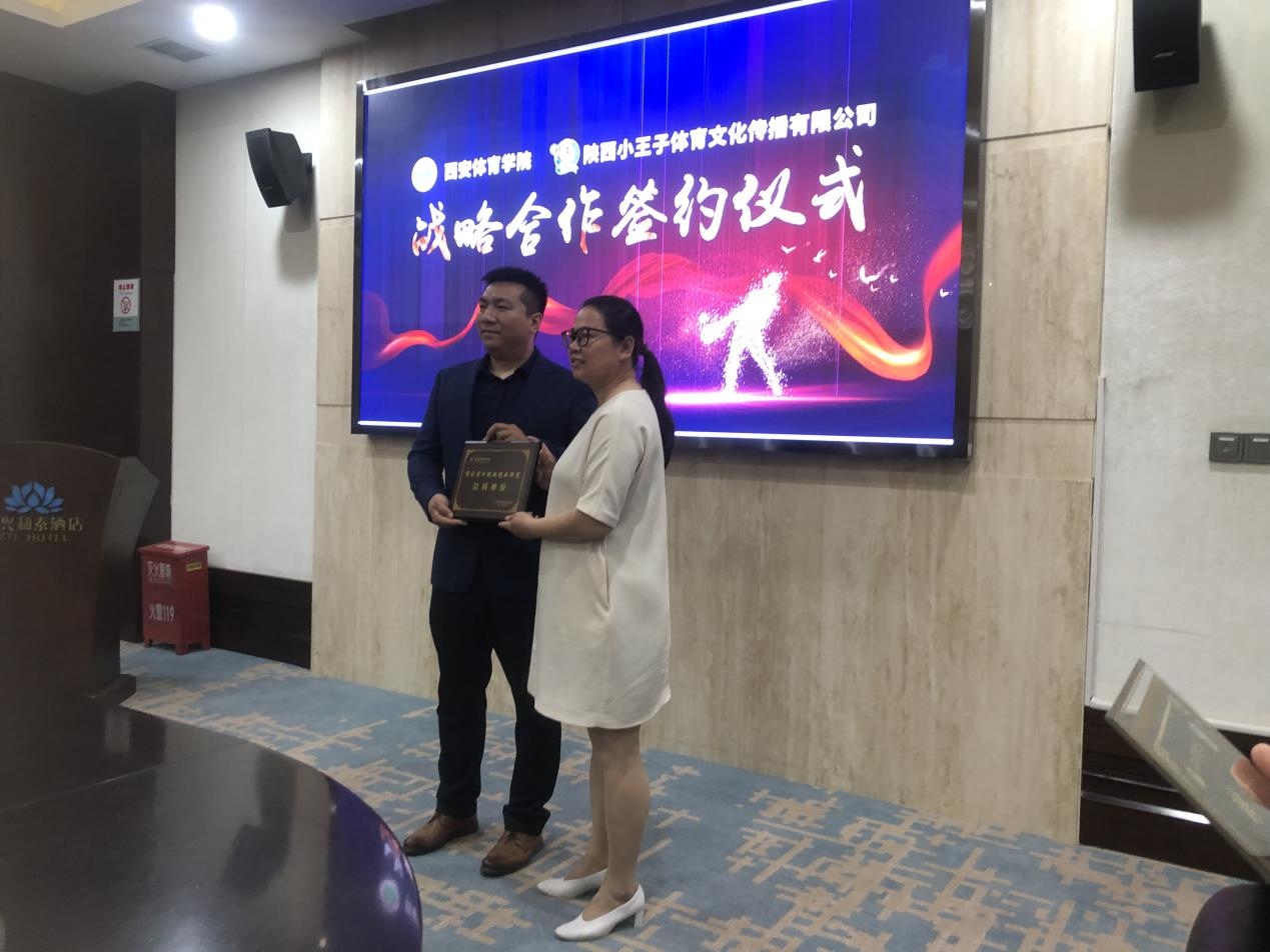 王鑫为小王子陕西小王子体育传播有限公司创始人陈刻铭颁发“实习实训创业就业联盟会员单位”