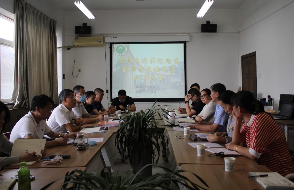 为进一步协助党委推进全面从严治党向纵深发展,督导检查巡视整改工作进度,落实监督职责,全面了解掌握二级党组织(学院)工作现状,找出存在问题,提升监督治理效能,我校党委副书记、纪委书记、监察专员杨芳乾一行领导于2022年5月31日(周二)上午九时莅临我院指导检查。