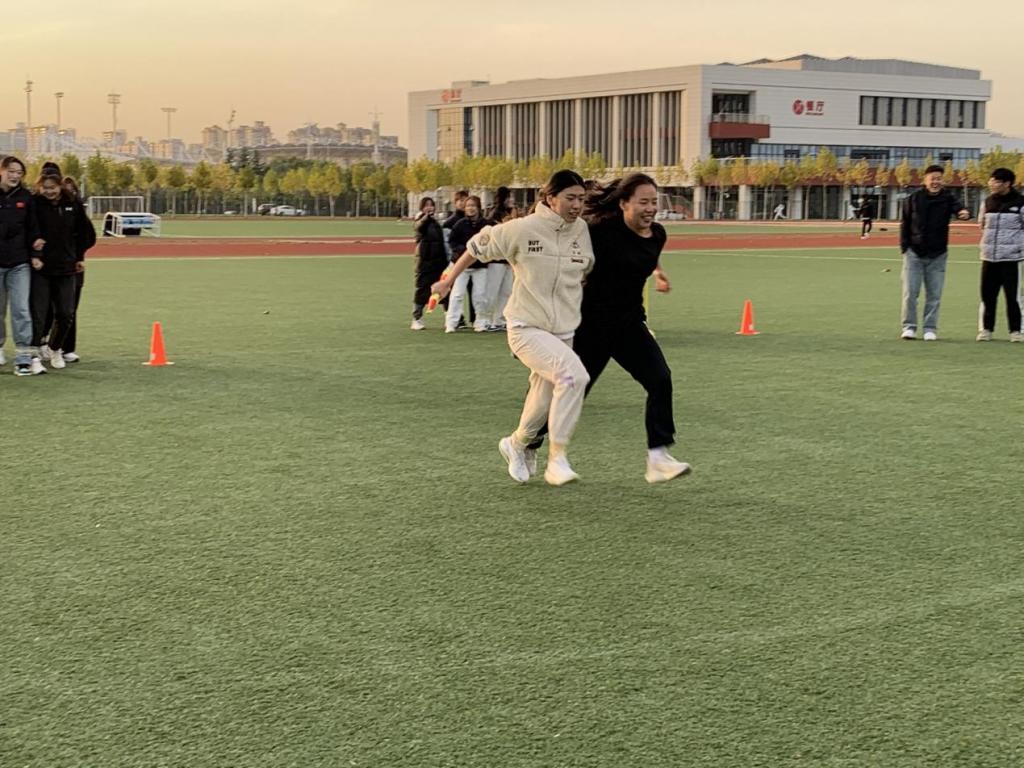 最后进行的项目是两人三足,比赛过程中,现场充满了欢声笑语。同学们在奔跑中互相激励,彼此加油助威,一边观看的同学们也不时发出阵阵欢呼声,为参赛队伍加油打气。在场师生的热情如同一簇绚烂的焰火在比赛场中绽放,通过欢笑将团结协作的精神传递给在场的每一个人。