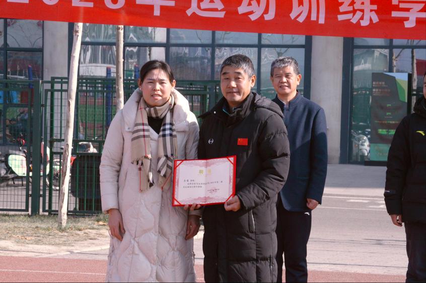 运动训练学院党委副书记王青向马俊老师颁发聘书