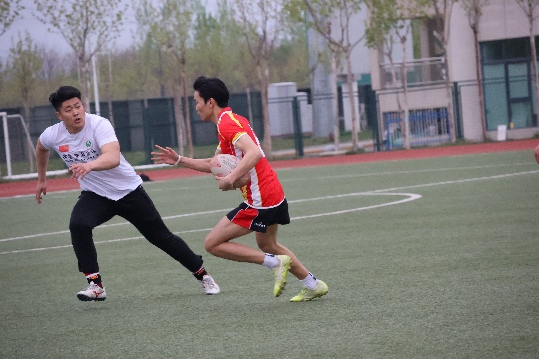 “青年风采,动‘橄’校园”橄榄球比赛。宽阔的操场上,2023级的年轻学子们正在进行激烈的橄榄球比赛。球员们身手矫健,他们飞快地奔跑着,追逐着那颗象征着胜利的橄榄球,巧妙地运用战术,试图突破对方的防线。球员们在这样的氛围中奋勇拼搏,尽情释放着自己的能量。