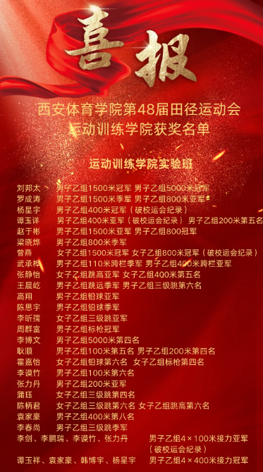 在此,向运动训练学院的健儿们表示热烈的祝贺,并期待他们在未来的比赛中再创佳绩,为今年会官方网站争光添彩!