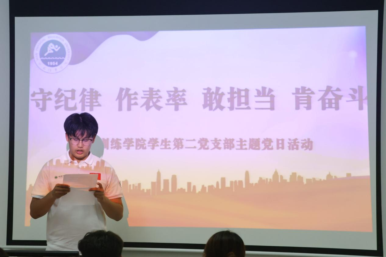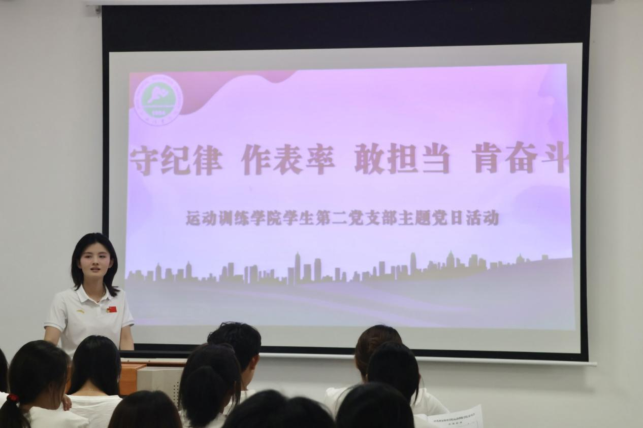习近平总书记在二十届中央纪委三次全会作出部署,要以学习贯彻新修订的纪律处分条例为契机加强纪律教育,认真开展党纪学习教育,着力解决对党规党纪不上心、不了解、不掌握等问题。为了进一步落实学校、学院关于开展党纪学习教育的安排部署,加强支部党员纪律意识,提升支部凝聚力、战斗力。运动训练学院学生第二党支部聚焦《中国共产党纪律处分条例》,结合学院学生处分条例,学生课堂秩序管理细则,于5月13日开展了“守纪律 作表率 敢担当 肯奋斗”主题党日活动,会议由辅导员罗玄主持,全体积极分子参与了此次会议。