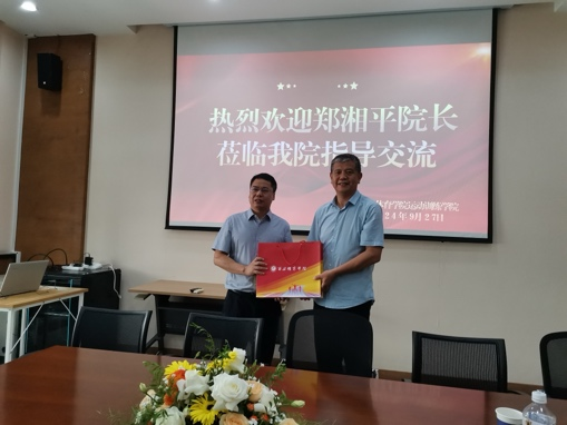 9月28日上午,我院邀请武汉体育学院运动训练学院郑湘平院长在二号行政楼1号会议室进行学科发展与专业建设交流。学院党政领导班子、学术委员会成员、教授、各年级主任、各教研室主任书记参加了本次会议。 会议由学院党委书记高月宏主持。