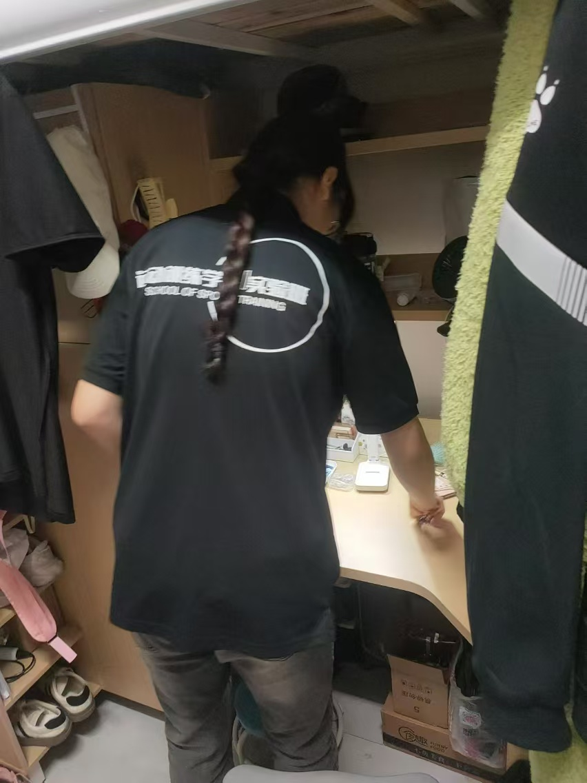 会后,运动训练实验班全体学生在宿舍内展开了劳动课程第一环节的活动。此次活动鼓励学生们从自身做起,从宿舍环境整治入手,参与宿舍劳动实践。学生们积极参与,对宿舍卫生死角进行彻底清理,规范物品摆放,确保宿舍环境整洁有序,营造温馨、舒适的居住氛围。
