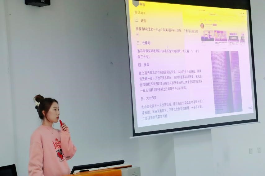 分享会在期待中拉开帷幕,来自北京体育大学的李晓雨以“为何考研”切入,刨析考研意义与动力,强调考研应基于个人发展规划和时代发展趋势,需经过深思熟虑,并非一时冲动或盲目跟风。她向同学们分享了北京体育大学的精彩瞬间,她指出,一个优秀的环境能够激发个人的潜力,提供更多实践和学习的机会,从而促进个人能力的提升。激励同学们一定要树立正确目标,敢想敢做,为成就更好的自己努力拼搏。