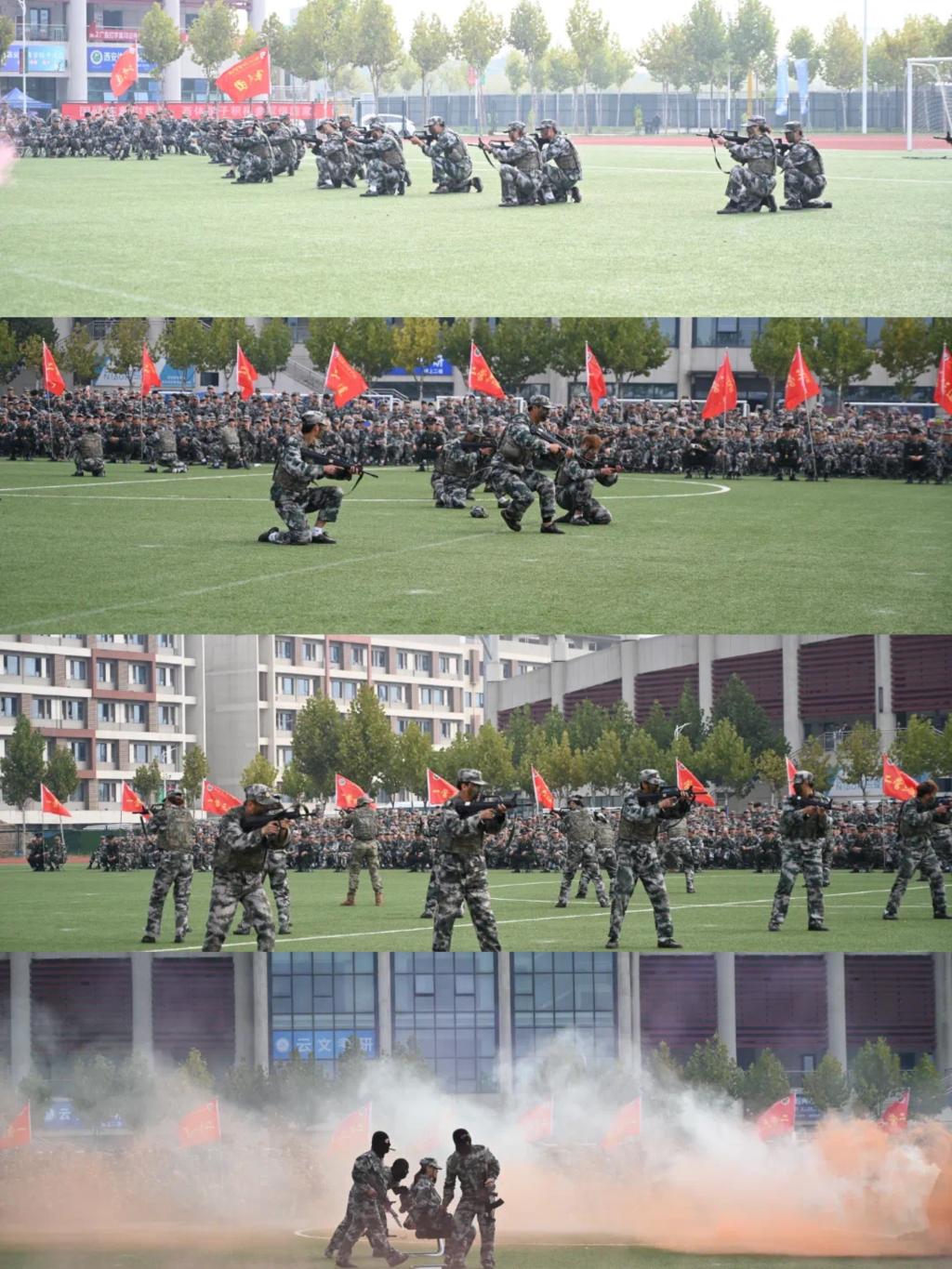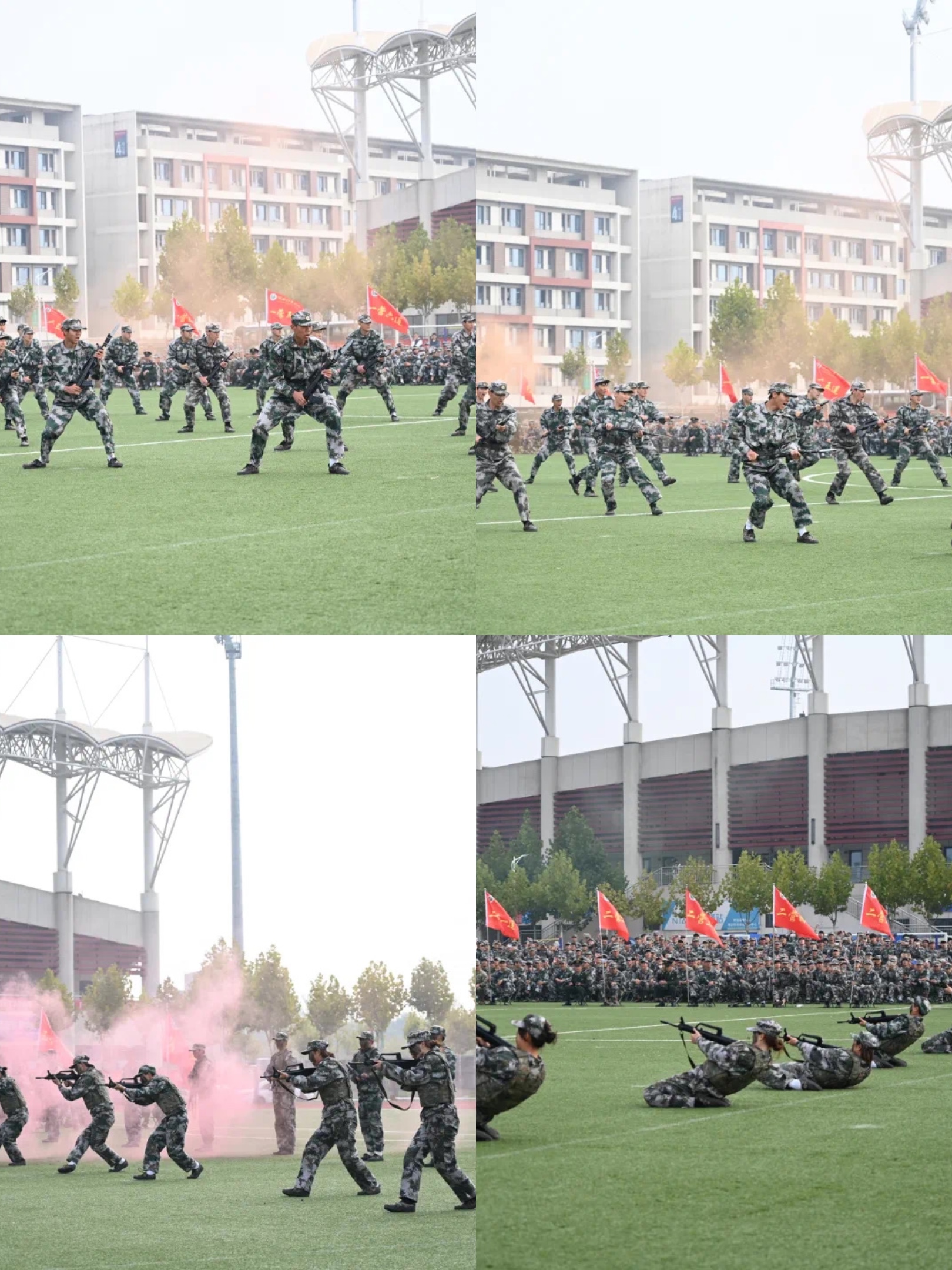 战术方队在军训中展现了极高的纪律性和团队精神。 成员们体格强健,目光坚毅,充分展示了中国青年的精神风貌。他们不仅在训练中表现出色,还在实战演练中学习了各种战术动作,如一些据枪动作、搜索前进、滑跪以及各种倒功姿势和各项技术动作,体现了他们的专业素养和团队精神。