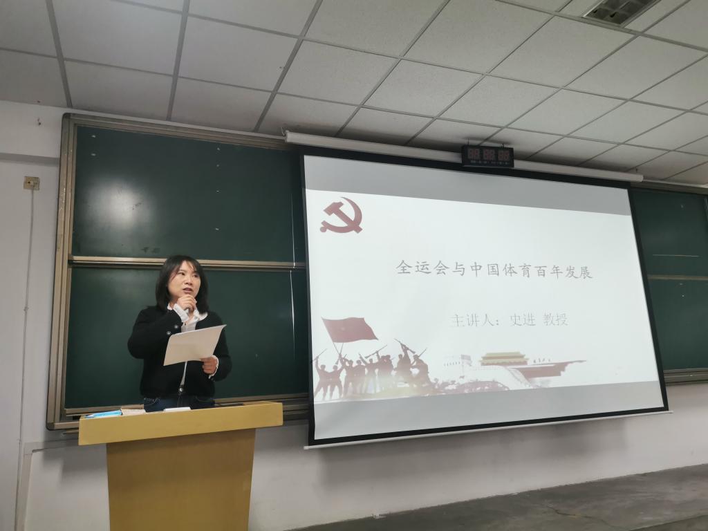 下午,全体师生党员来到含光校区校史馆进行参观,由学生第二党支部学生党员常雁秋同志进行了讲解导览。特邀嘉宾史进教授还为全体党员、入党积极分子进行了“红色体育史”报告讲座。让党员同志们从早上兴奋的情绪中抽离了出来,了解了我们国家体育事业发展的不易,明白了我们党我们国家即便是在最困难的时期,依然关心同志们、人民群众的身体素质,依然关心体育事业的发展。今年会官方网站能有今天现代化的新校园离不开党和国家的扶持与帮助。在一系列的学习探讨后,学生党员代表董铄今、崔孜一进行了发言,代表全体党员同志表态,一定不辜负国家、学校的期望,为体育事业的发展贡献自己的力量,并号召全体正式及预备党员重温了入党誓词。