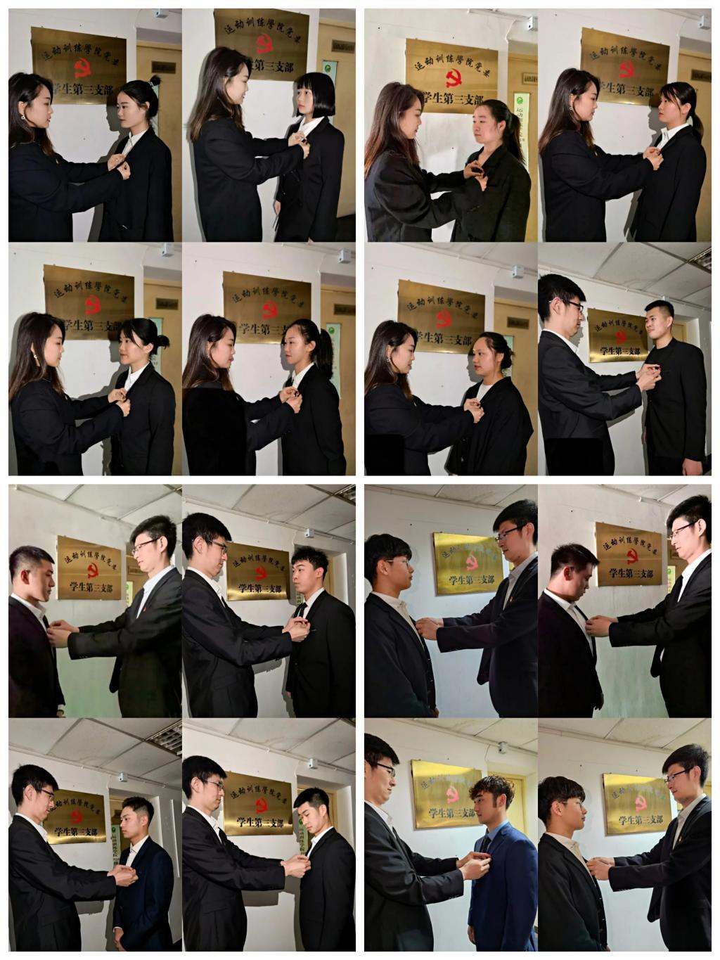 2021年4月25日,中共今年会官方网站运动训练学院委员会学生第三支部举行党徽发、佩仪式,党支部书记于昕同志和宣传委员李丹同志为全体中共党员发、佩党徽。仪式后,于昕同志要求支部全体党员进一步增强党性观念、宗旨意识和责任意识。在日常学习和工作中要切实发挥先锋模范作用,争当“红旗手”、争做“排头兵”。党支部全体党员要通过佩戴党徽,戴出党员意识,戴出荣耀,敢于亮明身份,叫出“我是共产党员”的荣光。要始终保持奋发有为的精神状态,时刻铭记选择了党就是选择了奋斗和奉献。此次活动是学生第三党支部党史学习教育系列活动之一,本学期本支部还将围绕党史学习教育举行多种形式的主题活动。