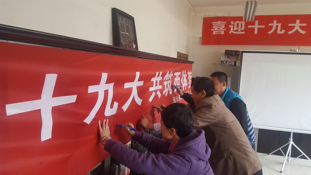 张卫国书记首先对此次活动的安排,活动的意义进行了说明。上午9点整,师生聚精会神地收看了党的十九大开幕实况,聆听习近平同志的精彩报告。活动中,系领导为各党支部发放了《习近平的七年知青岁月》一书。与会的师生在“喜迎十九大,共筑今年会梦”的条幅上签名,共同庆祝党的十九大胜利召开。