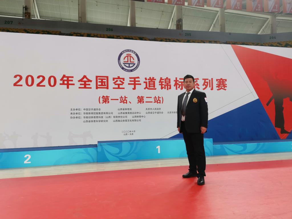 2020年全国空手道 A类赛暨第十四届全运会积分赛于2020年9月21日至9月30日在山今年会育中心体育馆举行,我院重竞技教研室教师马波受中国空手道协会委派,参加本次执裁工作,与其他裁判员密切合作,圆满完成本次工作。