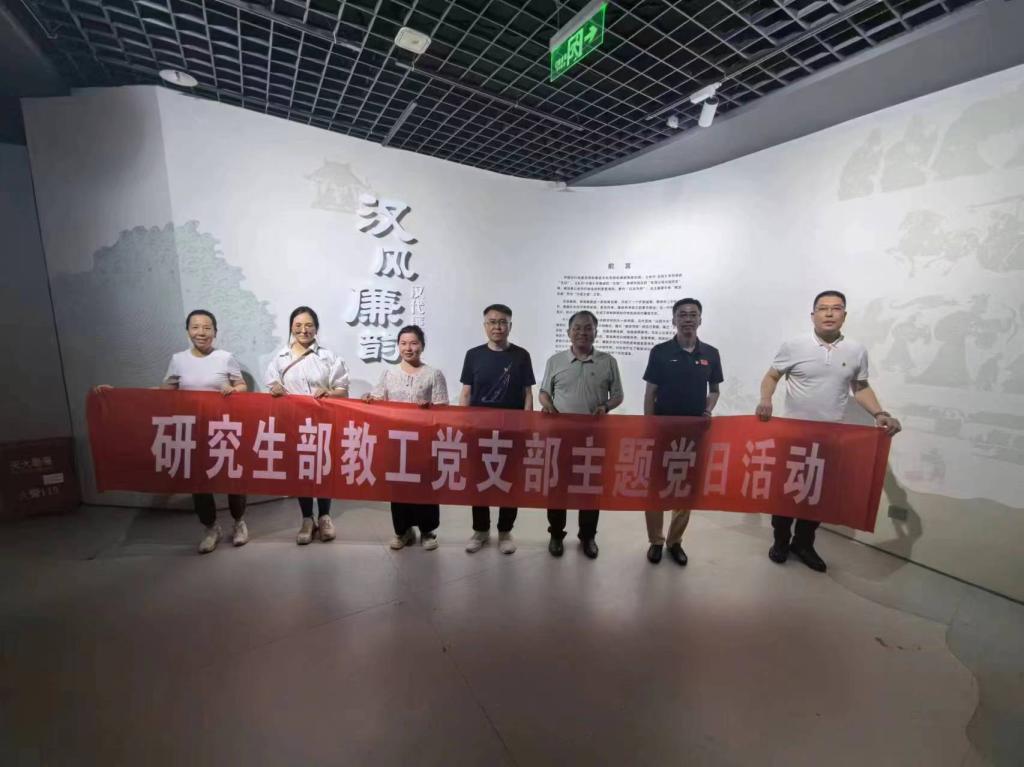 6月12日,研究生部党委开展了“学汉风廉韵”为主题的党日活动。研究生部7位党员同志参观“汉风廉韵”展览馆,学习了解两汉时期的“廉政思想”、“廉政制度”、“廉政文化”、“廉政人物”,深刻感受汉风廉韵。此次主题党日活动旨在对党员实地进行廉政教育,是研究生部党委开展党纪学习教育的内涵延伸,更是一次适时的警醒。