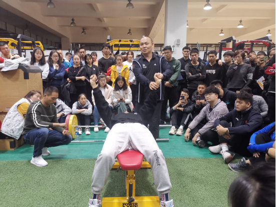 11月12日下午,在今年会官方网站游泳馆二楼体能实验室,汤仁圣博士通过现场指导演示等方式,阐述了体能与竞技水平之间具有的密切联系,介绍了新的体能训练理念方法以及相关科研成果。汤博士先给大家讲解了“如何科学的训练自己的上半身肌肉和下半身肌肉”的方法,其次从原理方面给予解答并列举若干训练实例,与同学们分享了运动后的放松按压动作。最后,对同学们提出的问题一一答疑解惑,让同学们亲自参与实验,乐在其中,以幽默风趣的语言和逐层递进的清晰表达,引得师生阵阵掌声,在场师生纷纷表示在此次讲座中受益匪浅,过讲座学习提高了科学健身的意识,更坚定健康运动的信念。