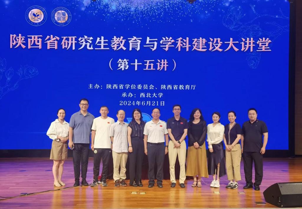 2024年6月21日,陕西省研究生教育与学科建设大讲堂(第十五讲)在西北大学隆重举行。我校副校长谢英,研究生部主任杨建设、副主任方程,发展规划处副主任景俊青、康顺岐,以及部分二级学院分管研究生教育的副院长及研究生出席了此次活动。