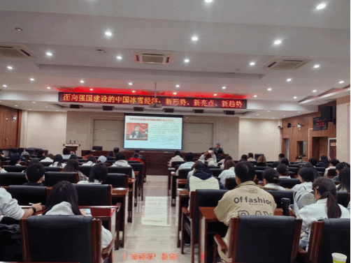 在学术报告环节,林显鹏教授结合自身丰富的政策制定经验与科研实践,从 “新形势”“新亮点”“新趋势” 三个维度系统剖析中国冰雪经济的发展现状与未来走向。他指出,随着后冬奥时代的到来,我国冰雪经济已从 “政策驱动” 向 “市场与政策双轮驱动” 转变,冰雪场地设施建设不断完善、群众冰雪运动参与率持续提升、冰雪产业与文旅、科技等领域的融合创新成为新增长点。同时,林教授结合政策文件,详细解读了国家层面对于冰雪经济的战略布局,并通过北京、哈尔滨等地冰雪产业规划的实践案例,为在场师生阐述了地方冰雪经济发展的路径与经验。此外,他还针对冰雪产业人才培养、体育场馆赛后运营、冰雪经济区域协同发展等热点问题提出独到见解,引发师生广泛思考。