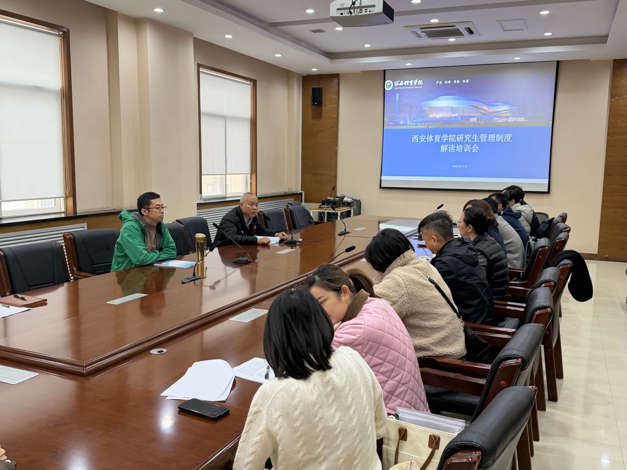 11月14日下午16时,我校在含光校区2号行政楼1楼会议室召开研究生管理制度解读培训会。各二级学院主管研究生工作的副院长、研究生教学秘书以及研究生辅导员参加会议。会议由研究生部主任杨建设主持。