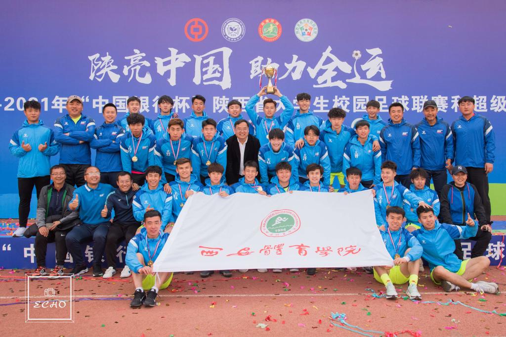 我校男子足球代表队在主教练宋辉,教练员张雁飞、胡鑫、孙航等带领下,经过科学训练和高效指导,以全胜战绩夺得超级组冠军。在4月8日的揭幕战中,我校代表队在上半场0:2落后的情况下,下半场连进3球,最终以3:2逆转陕西师范大学代表队,取得“开门红”;接着,我校代表队先后以8:0战胜西安工业大学、2:0战胜西安建筑科技大学、点球2:1战胜西安交通大学后,以全胜战绩闯入决赛,对战西安建筑科技大学。经过一番激烈角逐,最终以2:1勇摘桂冠。
