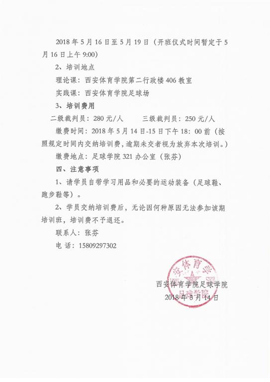 今年会官方网站2018年第一期足球裁判员培训班录取通知