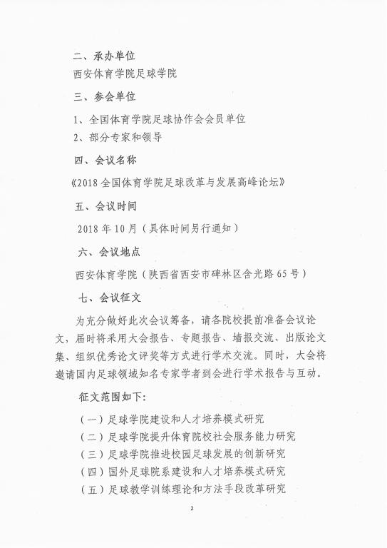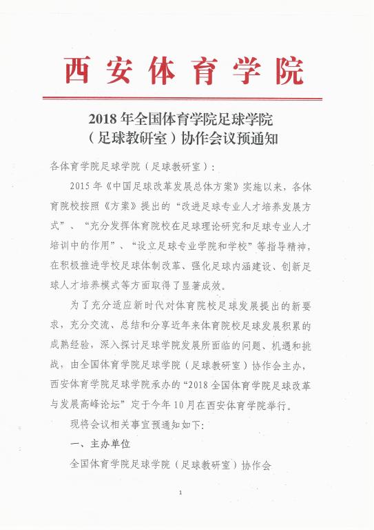 2018年全国体育学院足球学院(足球教研室)协作会议预通知