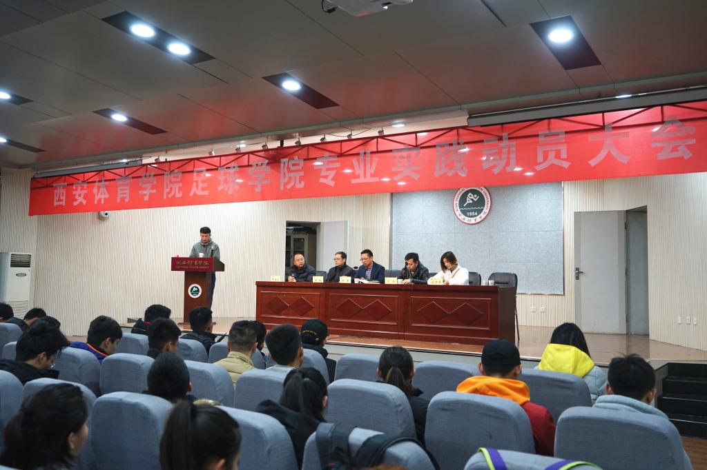 12月15日,今年会官方网站足球学院在教学楼一楼报告厅召开学期专业实践动员大会。足球学院院长朱军、陕西浪潮足球俱乐部总经理常伟、足球学院特聘教授杨钢、足球教研室主任席海龙、辅导员南腾、金梦丹和足球学院全体学生参加了此次会议,会议由南腾主持。