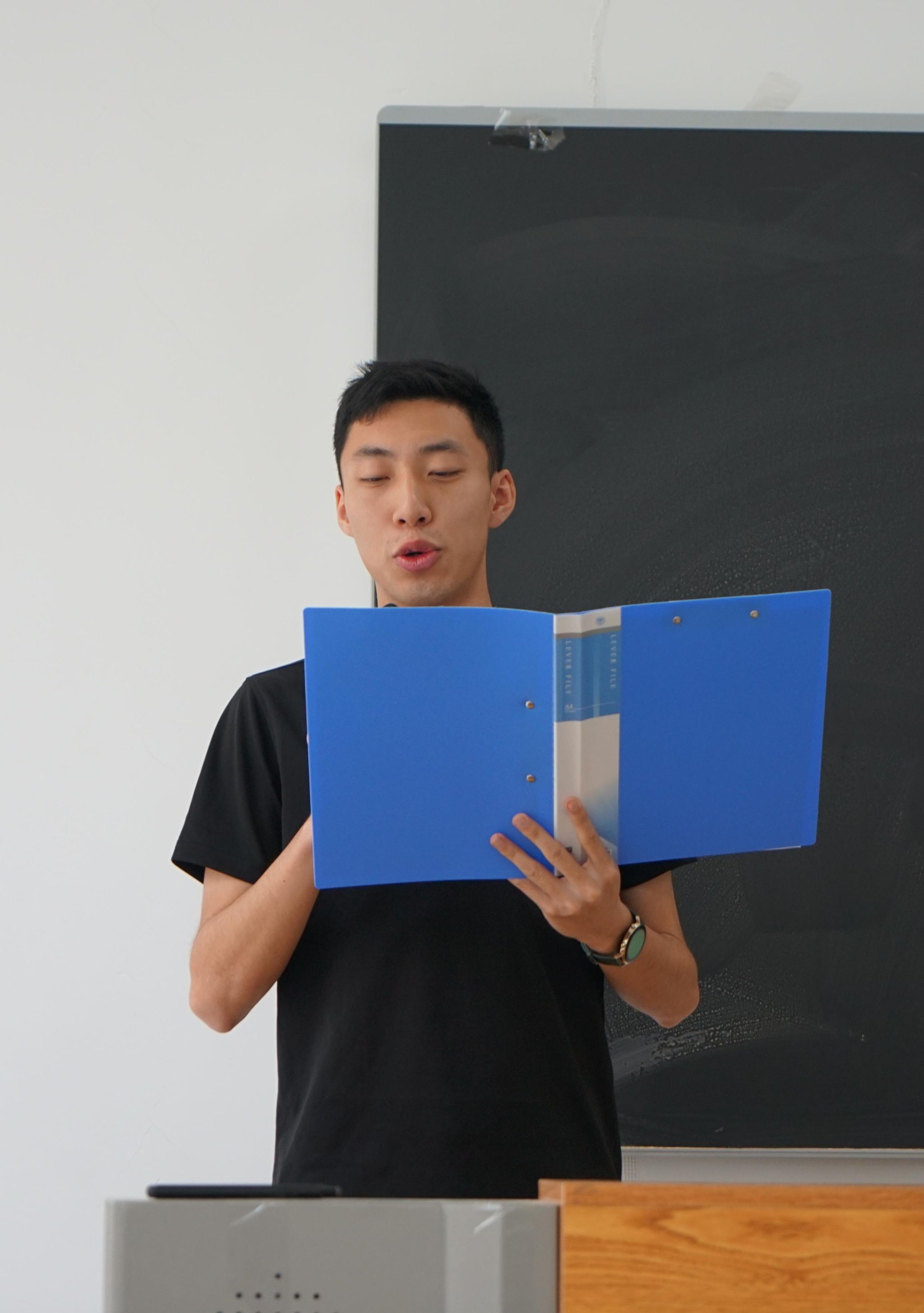 2026届本科生宋泽翰作为学生代表发言。他表达了对学院和老师的感谢,并代表全体同学郑重承诺,将以饱满的热情、严谨的态度投入实习工作,严格遵守实习纪律,努力提升专业技能,展现足球学院学子的良好风貌。