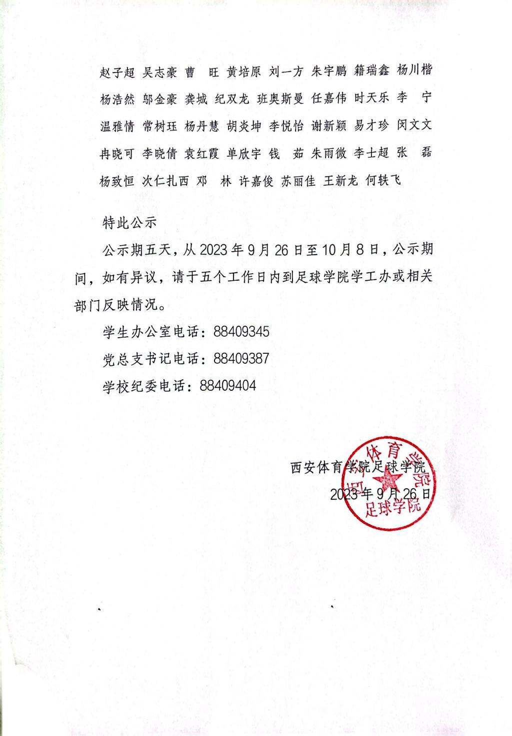 足球学院2023-2024学年仇净泽等103人家庭经济困难认定名单公示