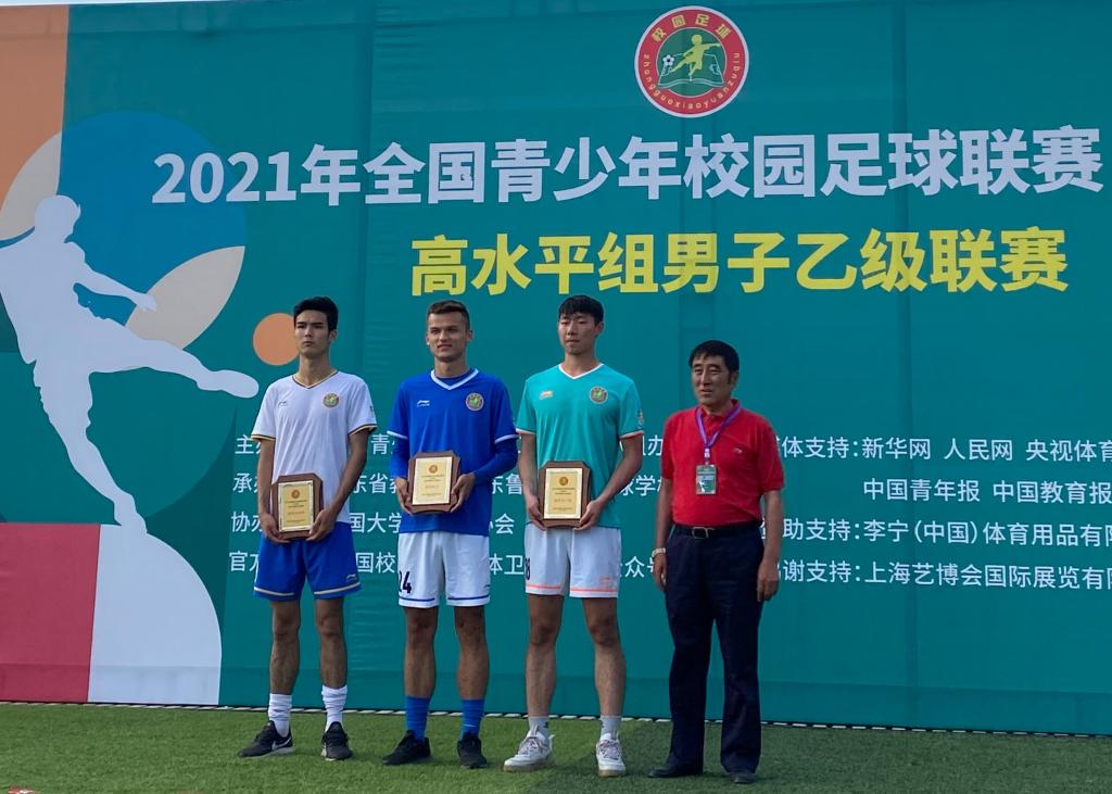 我院男足在4月18日夺得2020—2021年陕西省大学生足球联赛超级组冠军后,在领队席海龙,主教练宋辉,教练员张雁飞、胡鑫带领下代表陕西省参加2021年全国青少年校园足球联赛(大学组)高水平组男子乙级联赛。经过科学训练和高效指导,先后战胜海南大学、贵州师范大学、华东政法大学,八进四比赛惜败本次赛事冠军华中科技大学,5至8名排位赛中战胜辽宁师范大学、广西民族大学夺得第五名,获得了参加甲级联赛的资格。库迪热提·库尔班获得本次比赛最佳射手,宋辉获得优秀教练员。