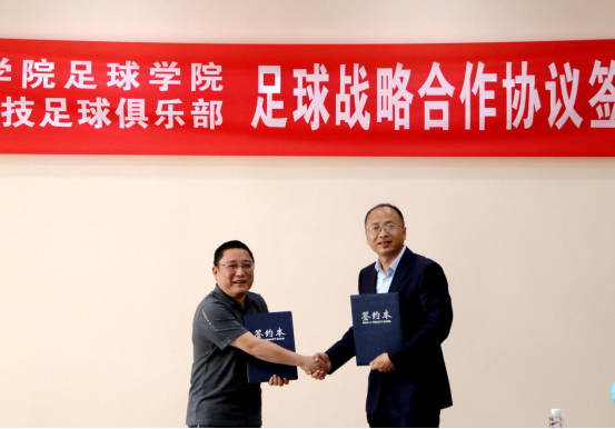 之后席海龙与张新宇代表双方签署了合作协议,并由席海龙向长安竞技足球俱乐部授予教学实践基地牌匾。